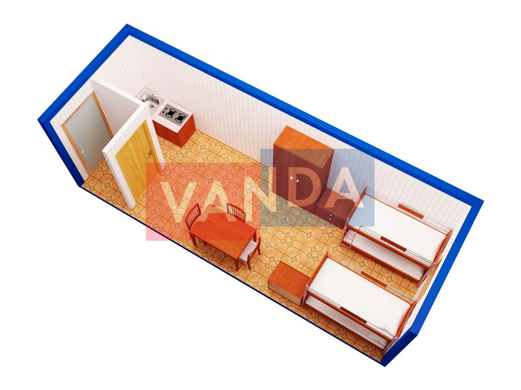 Металлическая бытовка с кухней в тамбуре 5,85 x 2,4 - Оргалит ДВП