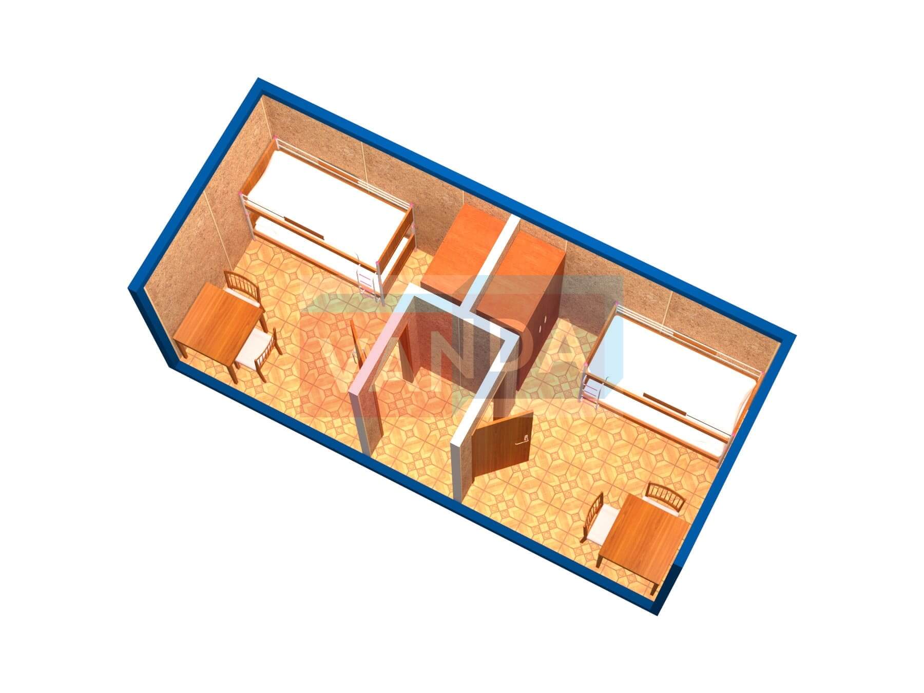 Блок контейнер металлический распашонка 5,85х2,4 - Оргалит ДВП изготавливается из несущего каркаса (верхняя и нижняя обвязка): швеллер 100х50х3 мм., угловые стойки: сложно - гнутый угол 90х90х3 мм., крыша блок-контейнера: металл сварной 0,9-1 мм., качественная наружная отделка: оцинкованный профлист, внутренняя отделка стен: Оргалит-ДВП, внутренняя отделка потолка: Оргалит-ДВП, вспомогательный деревянный каркас (стены): брусок 40х75 мм., лаги пола: обрезная доска 40х100 мм., лаги потолка: обрезная доска 40х100 мм., выполнено утепление: Минеральная вата «ISOVER» – 50 мм. и пароизоляция: плёнка техническая, черновой пол состоит из: обрезная доска 20 мм. (2 сорт), чистовой пол покрыт: ДСП строительное 16 мм., отделка пола выполнена из качественных материалов. Контейнер комплектуется окнами: деревянное, двойное остекление 800х1000, входной дверью: ДГ 21-8 обшита снаружи оцинкованным листом, врезной замок и внутренними дверями: ДГ 21-8 (при наличии перегородки). Если в БК присутствуют перегородки, то для них используется: брусок 40х50 мм.
