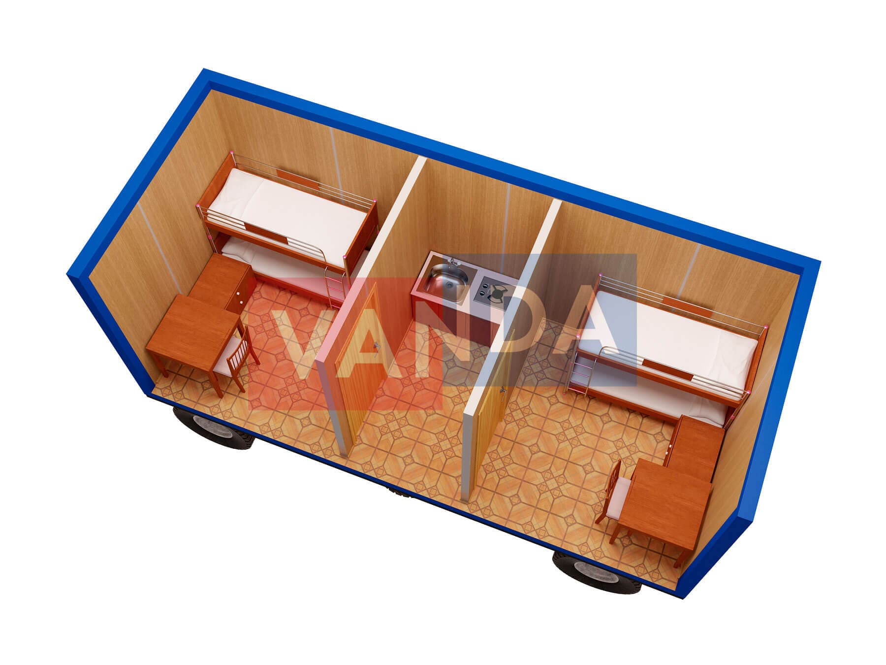 Мы сами изготавливаем прицеп бытовка на шасси 5,85х2,4, общей площадью 14.04 квадратных метров, имеющий наиболее доступную цену в нашем каталоге, и предлагающий широчайшие возможности для модернизаций. Простое решение с минимальными затратами.