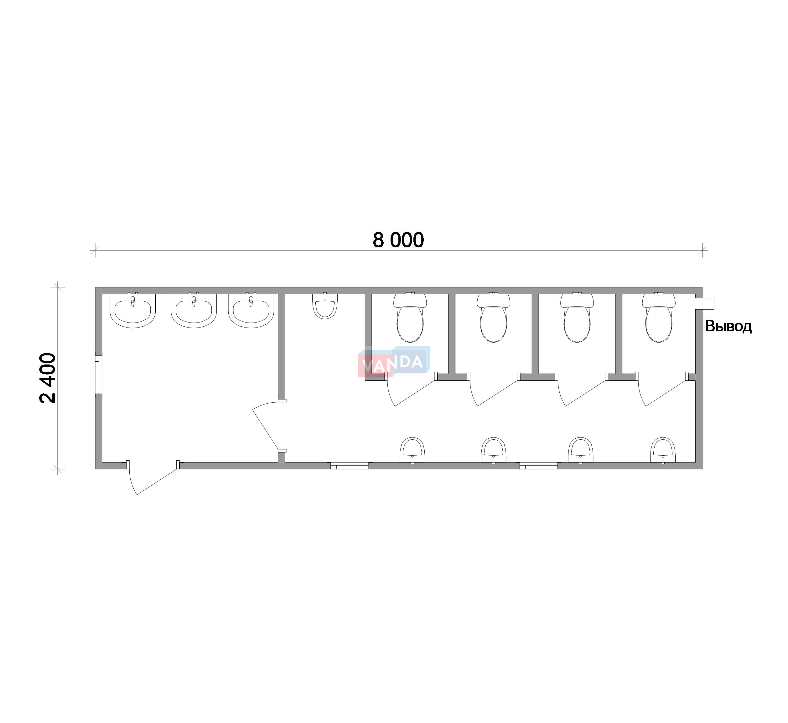 Проект модульной раздевалки 6.0х4,8 без тамбура