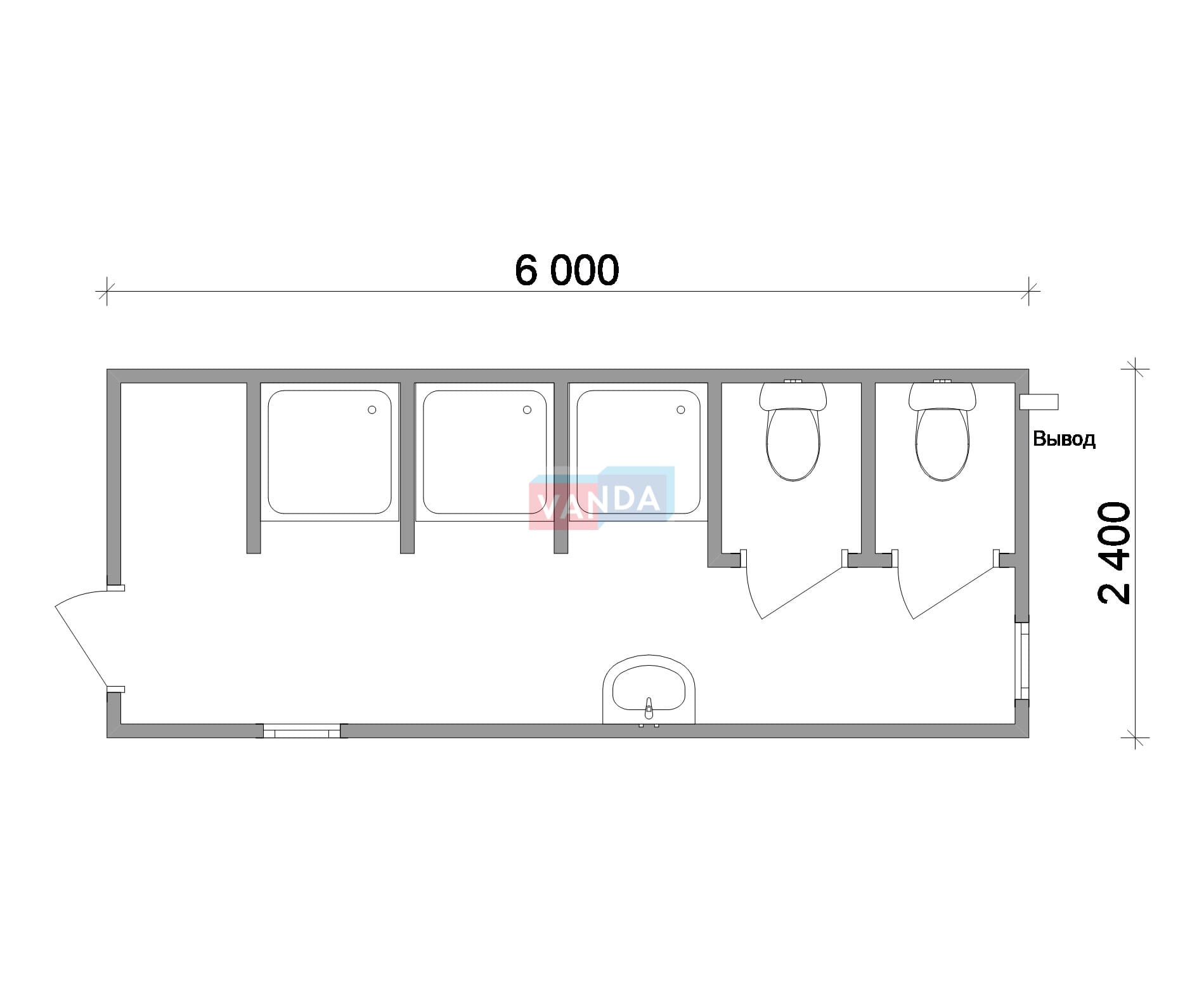 Проект модульной раздевалки 6.0х4,8 без тамбура