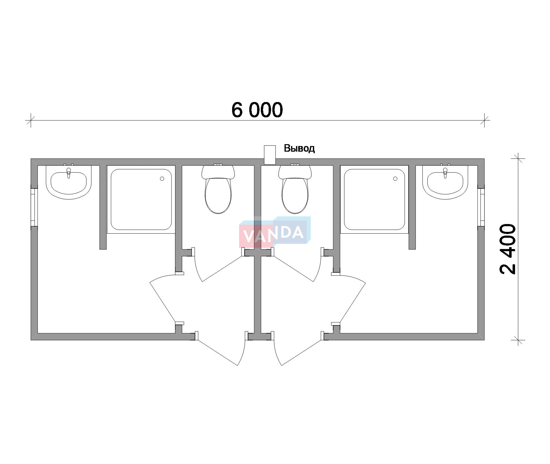 Проект модульной раздевалки 6.0х14,4