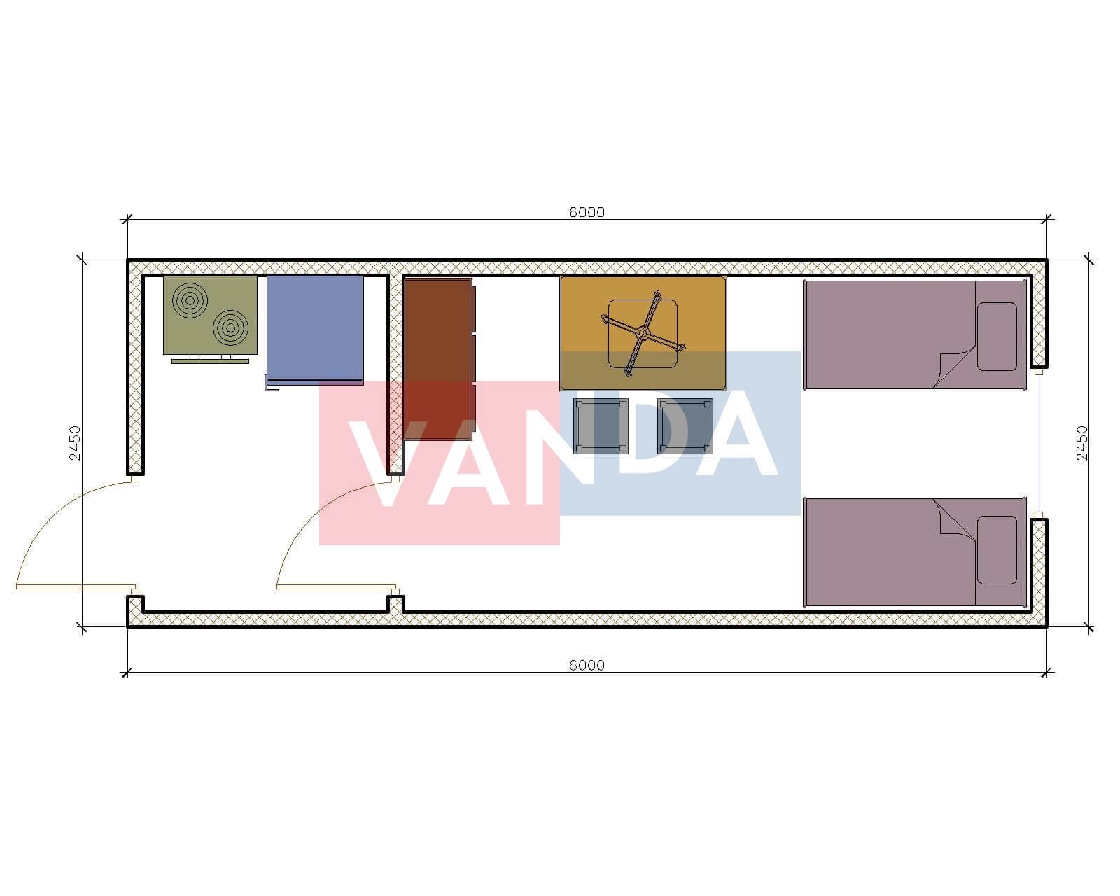Проект модульной раздевалки 6.0х4,8 с тамбуром