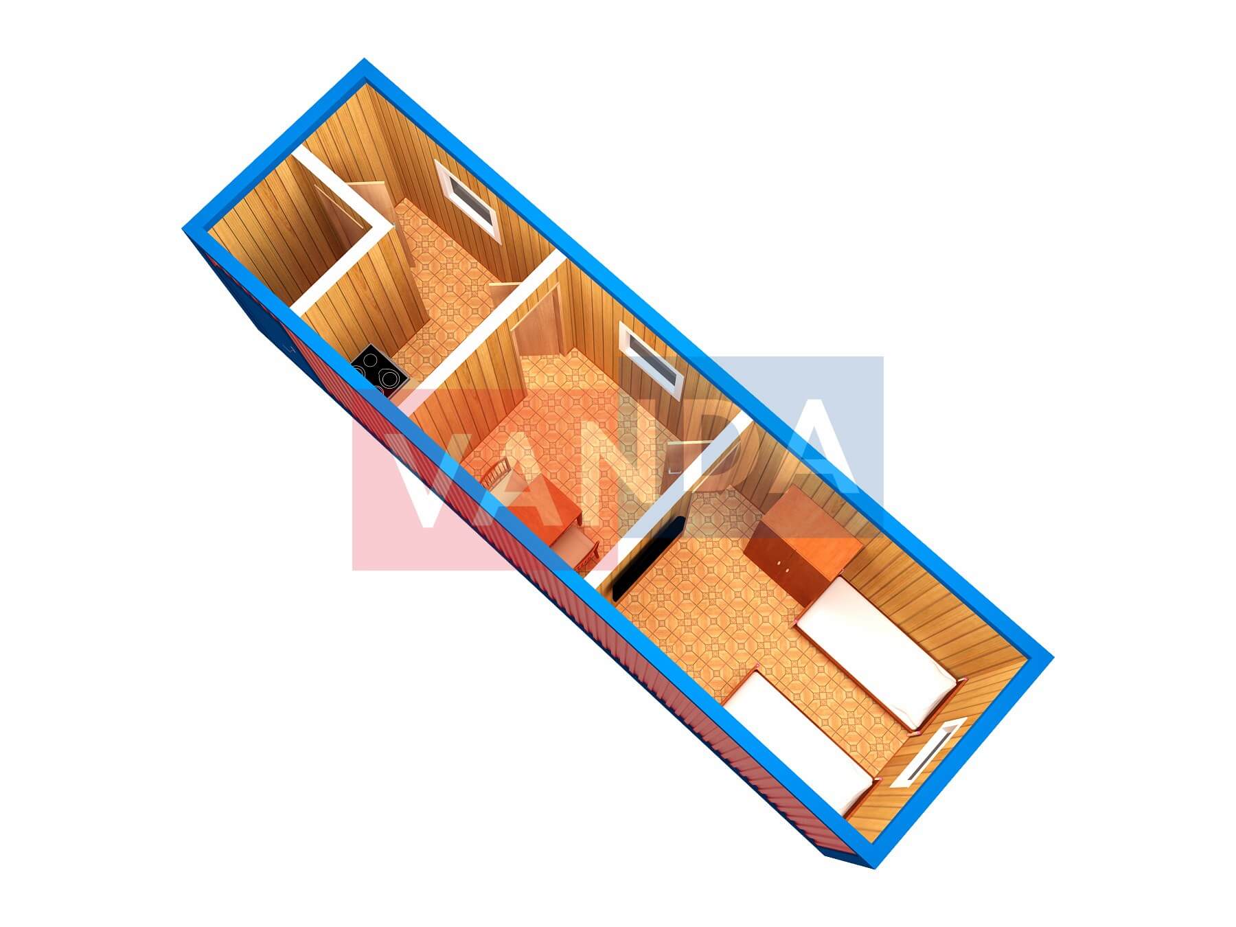 Модульная бытовка с двухскатной крышей 7.2x6.0