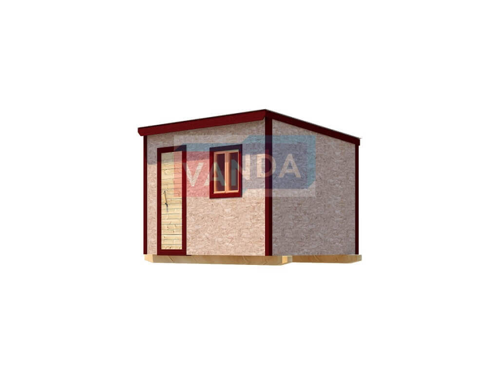 Строительная бытовка без внутренней отделки №1 (вариант 3) изготавливается из качественных материалов: обвязочный венец (сани): брус 100х150 мм., половые лаги: обрезная доска 40х150 мм., через 80 см. (плашмя), черновые полы: обрезная доска 20 мм. (2 сорт), (не сплошной настил, через 10 - 15 см.), чистовой пол покрыт: ДСП строительное 16 мм.. Для изготовления каркаса и перегородок используется: брусок 40х50 мм.. Для стропил используется: обрезная доска 40х150 мм., на кровлю ложится: оцинкованный профлист. Качественная наружная отделка: Плита OSB 9 мм.. Выполнено утепление полов: Минеральная вата «ISOVER» – 50 мм. и пароизоляция: плёнка техническая. Бытовка комплектуется окнами: деревянное, двустворчатое, одинарное остекление 800х800 мм., входной дверью: деревянная, наборная.