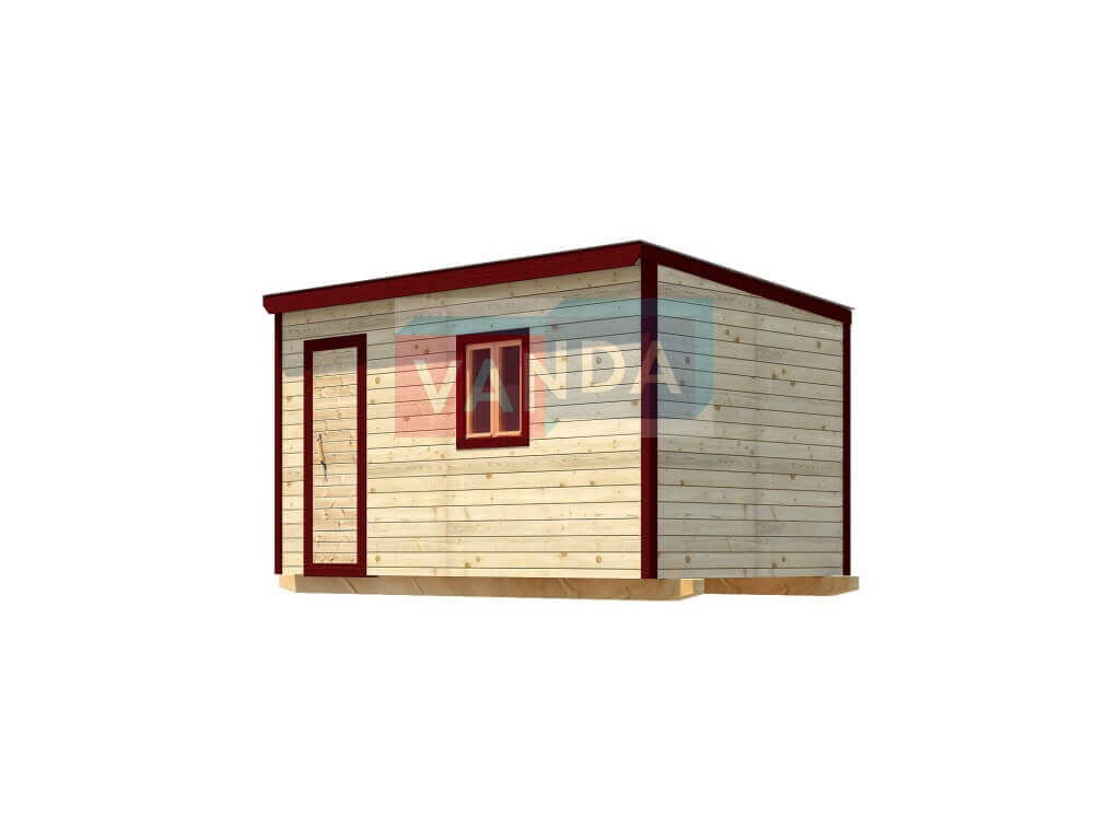 Строительная бытовка без внутренней отделки №2 (вариант 1) изготавливается из качественных материалов: обвязочный венец (сани): брус 100х150 мм., половые лаги: обрезная доска 40х150 мм., через 80 см. (плашмя), черновые полы: обрезная доска 20 мм. (2 сорт), (не сплошной настил, через 10 - 15 см.), чистовой пол покрыт: ДСП строительное 16 мм.. Для изготовления каркаса и перегородок используется: брусок 40х50 мм.. Для стропил используется: обрезная доска 40х150 мм., на кровлю ложится: оцинкованный профлист. Качественная наружная отделка: Имитация бруса. Выполнено утепление полов: Минеральная вата «ISOVER» – 50 мм. и пароизоляция: плёнка техническая. Бытовка комплектуется окнами: деревянное, двустворчатое, одинарное остекление 800х800 мм., входной дверью: деревянная, наборная.