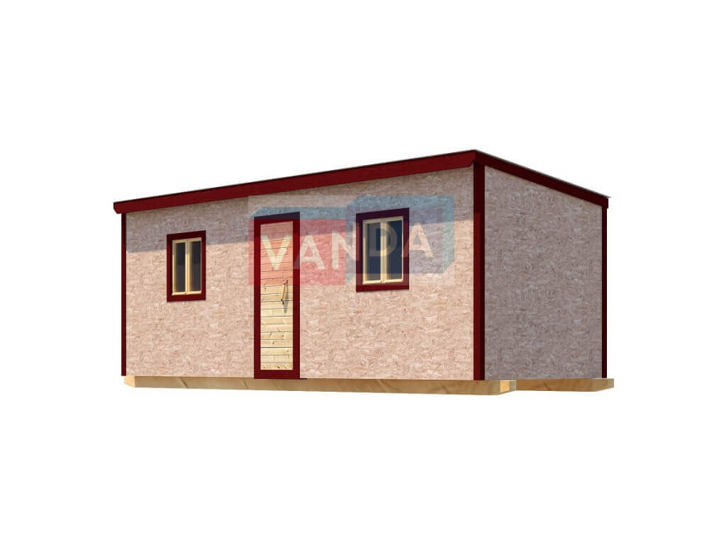 Строительная бытовка без внутренней отделки №4 (вариант 3) изготавливается из качественных материалов: обвязочный венец (сани): брус 100х150 мм., половые лаги: обрезная доска 40х150 мм., через 80 см. (плашмя), черновые полы: обрезная доска 20 мм. (2 сорт), (не сплошной настил, через 10 - 15 см.), чистовой пол покрыт: ДСП строительное 16 мм.. Для изготовления каркаса и перегородок используется: брусок 40х50 мм.. Для стропил используется: обрезная доска 40х150 мм., на кровлю ложится: оцинкованный профлист. Качественная наружная отделка: Плита OSB 9 мм.. Выполнено утепление полов: Минеральная вата «ISOVER» – 50 мм. и пароизоляция: плёнка техническая. Бытовка комплектуется окнами: деревянное, двустворчатое, одинарное остекление 800х800 мм., входной дверью: деревянная, наборная.