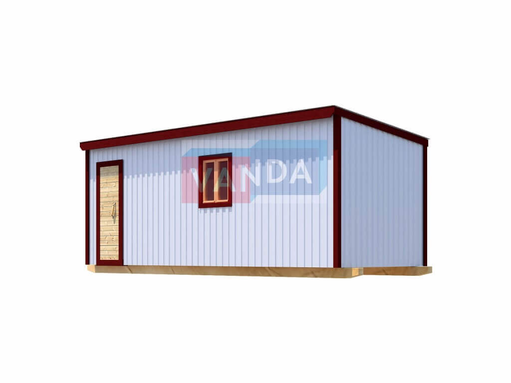Строительная бытовка без внутренней отделки №7 (вариант 2) изготавливается из качественных материалов: обвязочный венец (сани): брус 100х150 мм., половые лаги: обрезная доска 40х150 мм., через 80 см. (плашмя), черновые полы: обрезная доска 20 мм. (2 сорт), (не сплошной настил, через 10 - 15 см.), чистовой пол покрыт: ДСП строительное 16 мм.. Для изготовления каркаса и перегородок используется: брусок 40х50 мм.. Для стропил используется: обрезная доска 40х150 мм., на кровлю ложится: оцинкованный профлист. Качественная наружная отделка: Профлист. Выполнено утепление полов: Минеральная вата «ISOVER» – 50 мм. и пароизоляция: плёнка техническая. Бытовка комплектуется окнами: деревянное, двустворчатое, одинарное остекление 800х800 мм., входной дверью: деревянная, наборная.