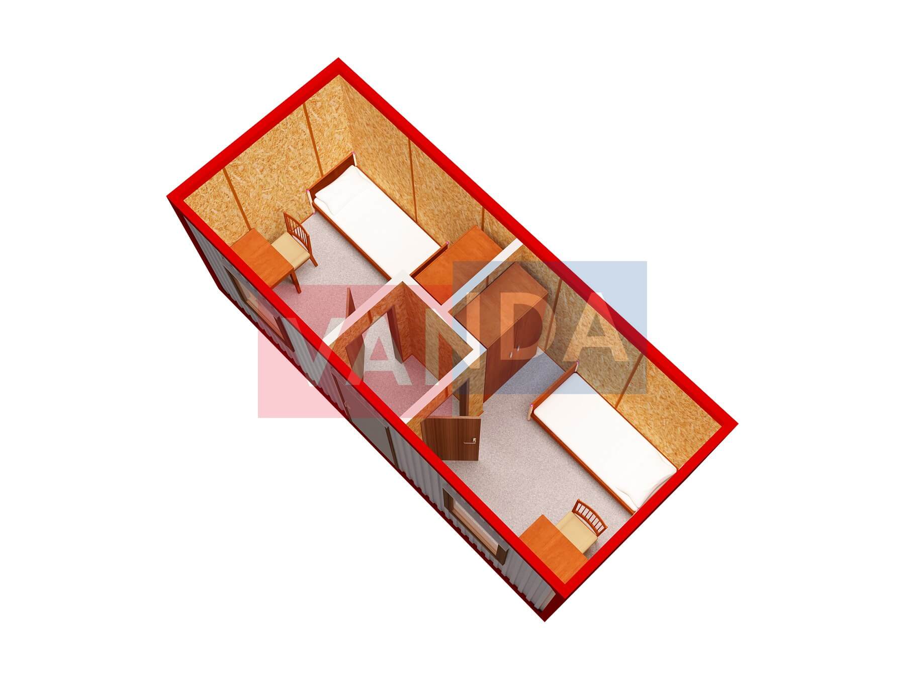 Металлическая бытовка без тамбура 5,85 x 2,4 - Оргалит ДВП