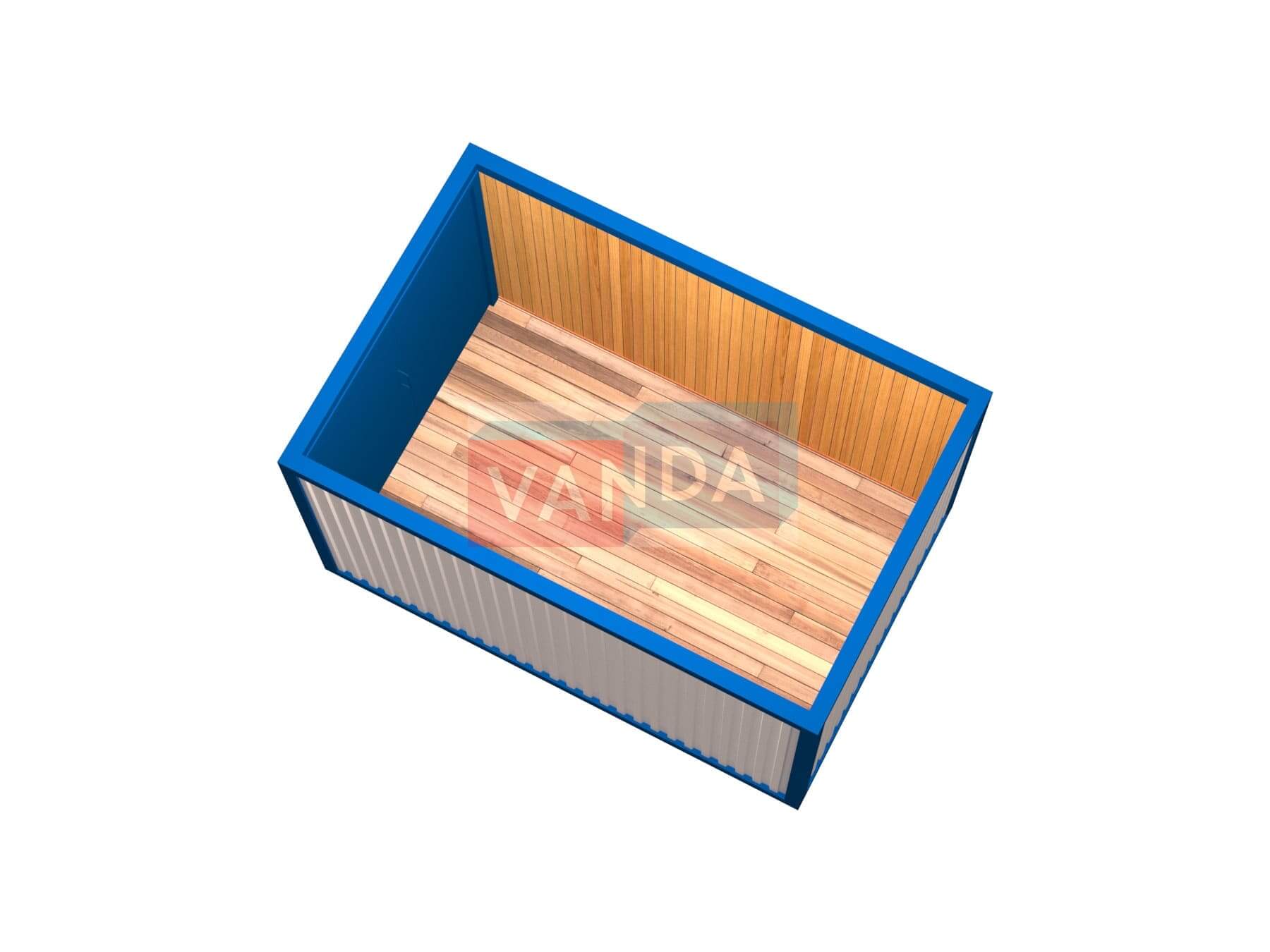 Бытовка под склад № 2 (Вариант 3) изготавливается из несущего каркаса (верхняя и нижняя обвязка): швеллер 100х50х3 мм., угловые стойки: сложно - гнутый угол 90х90х6 мм., крыша блок-контейнера: металл сварной 0,9-1 мм., качественная наружная отделка: оцинкованный профлист, внутренняя отделка стен: Вагонка деревянная, внутренняя отделка потолка: Вагонка деревянная, вспомогательный деревянный каркас (стены): брусок 40х75 мм., лаги пола: обрезная доска 40х100 мм., лаги потолка: обрезная доска 40х100 мм., выполнено утепление: Минеральная вата «ISOVER» – 50 мм. и пароизоляция: плёнка техническая, черновой пол состоит из: обрезная доска 20 мм. (2 сорт), чистовой пол покрыт: сухая, половая, шпунтованная доска 28 мм., отделка пола выполнена из качественных материалов. Контейнер комплектуется металлическими воротами.