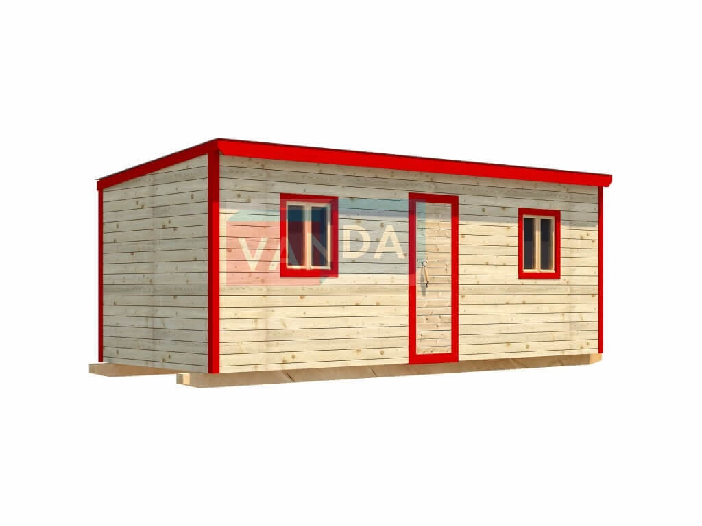 Строительная бытовка со сборкой на месте №4 (вариант 1) изготавливается из качественных материалов: обвязочный венец (сани): брус 100х150 мм., половые лаги: обрезная доска 40х150 мм., через 80 см. (плашмя), черновые полы: обрезная доска 20 мм. (2 сорт), (не сплошной настил, через 10 - 15 см.), чистовой пол покрыт: ДСП строительное 16 мм.. Для изготовления каркаса и перегородок используется: брусок 40х50 мм.. Для стропил используется: обрезная доска 40х150 мм., на кровлю ложится: оцинкованный профлист. Качественная наружная отделка: Имитация бруса, внутренняя отделка стен: Оргалит-ДВП, внутренняя отделка потолка: Оргалит-ДВП. Выполнено утепление: Минеральная вата «ISOVER» – 50 мм. и пароизоляция: плёнка техническая. Бытовка комплектуется окнами: деревянное, двустворчатое, одинарное остекление 800х800 мм., входной дверью: деревянная, наборная и внутренними дверями: деревянная, наборная (при наличии перегородки).