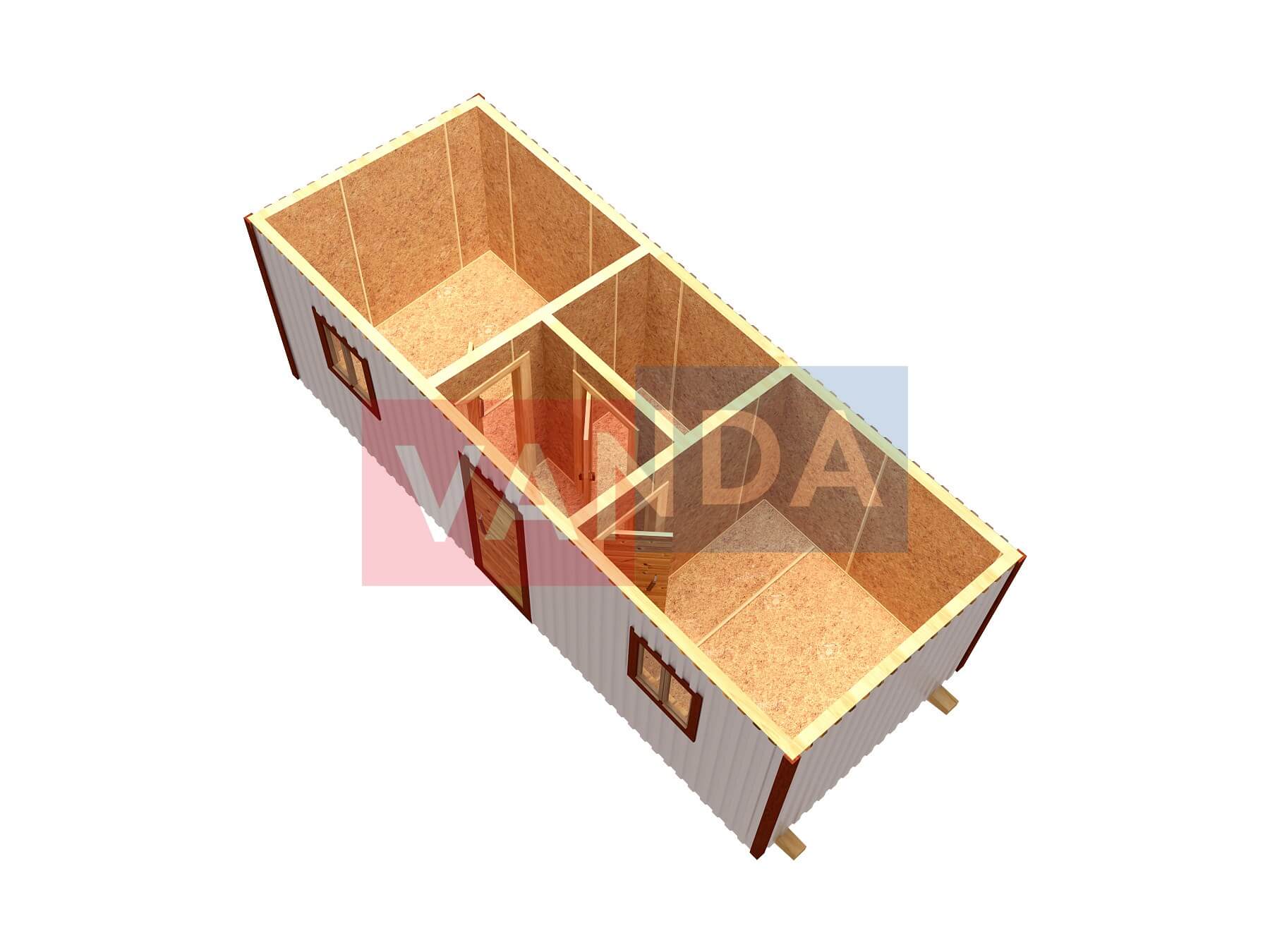 Металлическая бытовка без тамбура 5,85 x 2,4 - Вагонка ПВХ