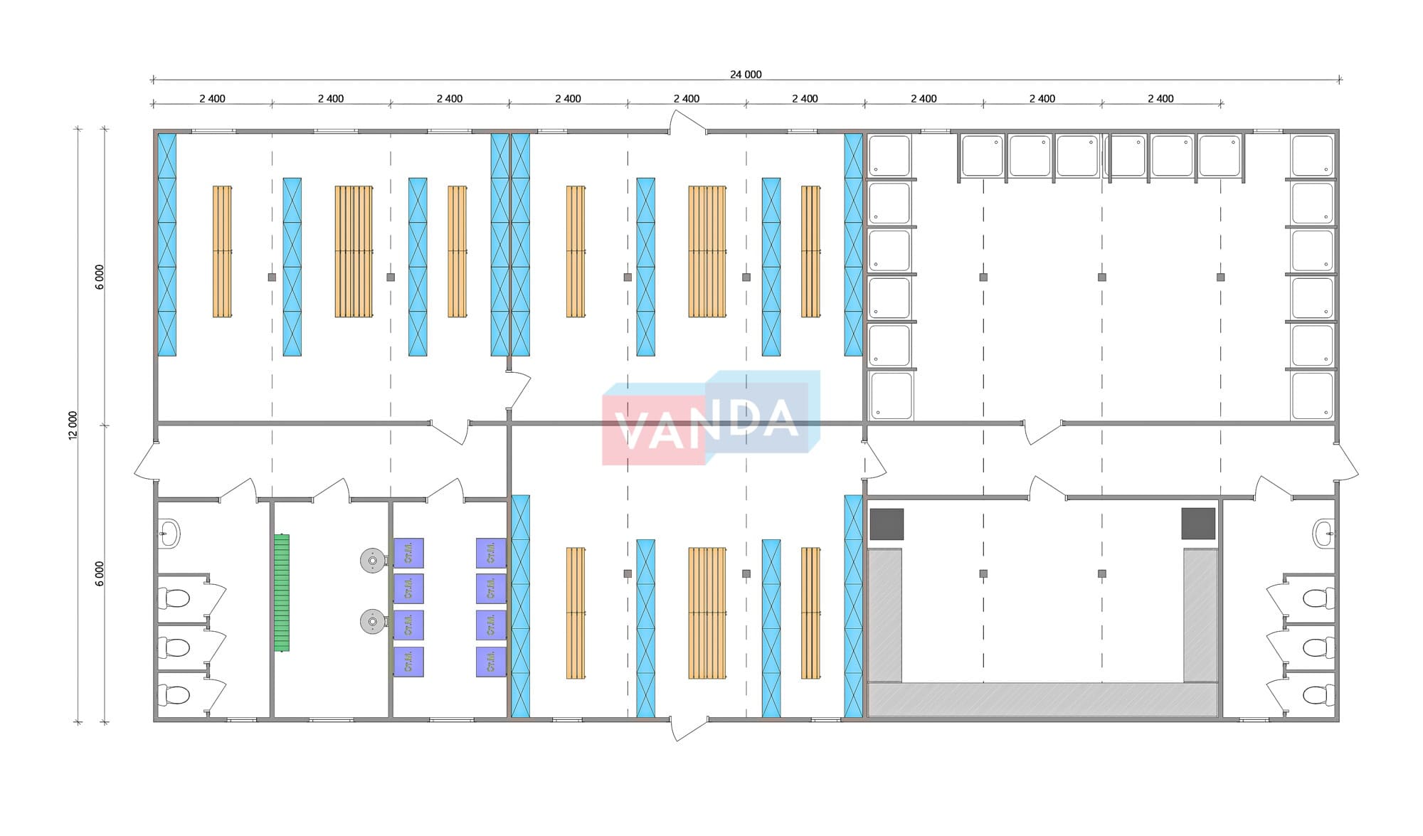 ПРОЕКТ СТОЛОВОЙ ИЗ БЛОК КОНТЕЙНЕРОВ 8x14.4