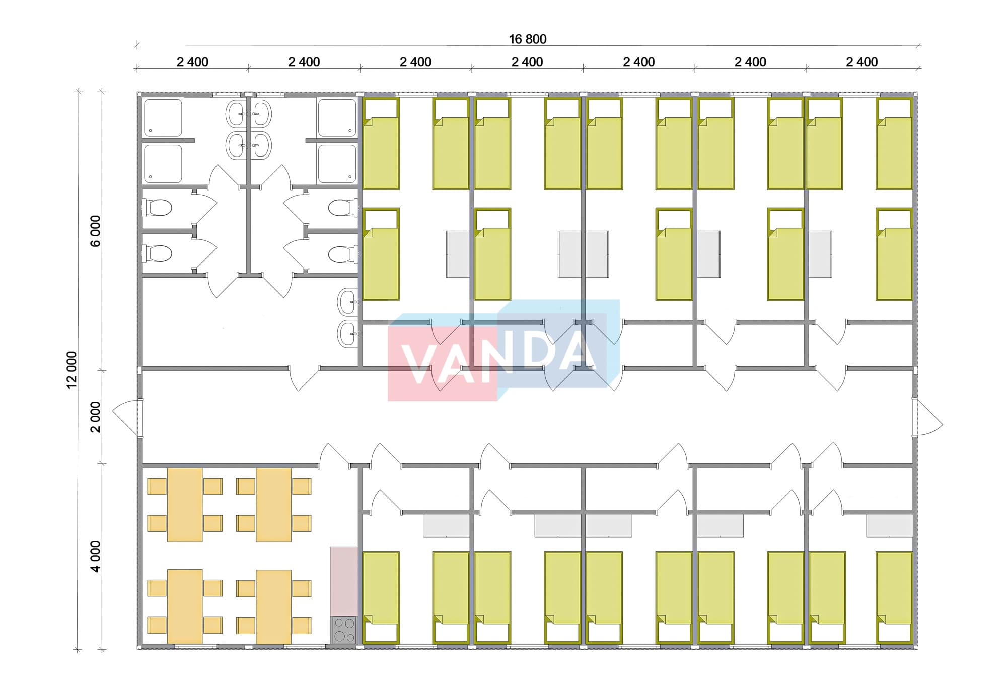 Проект общежития из блок контейнеров 12X16.8 Плита OSB
