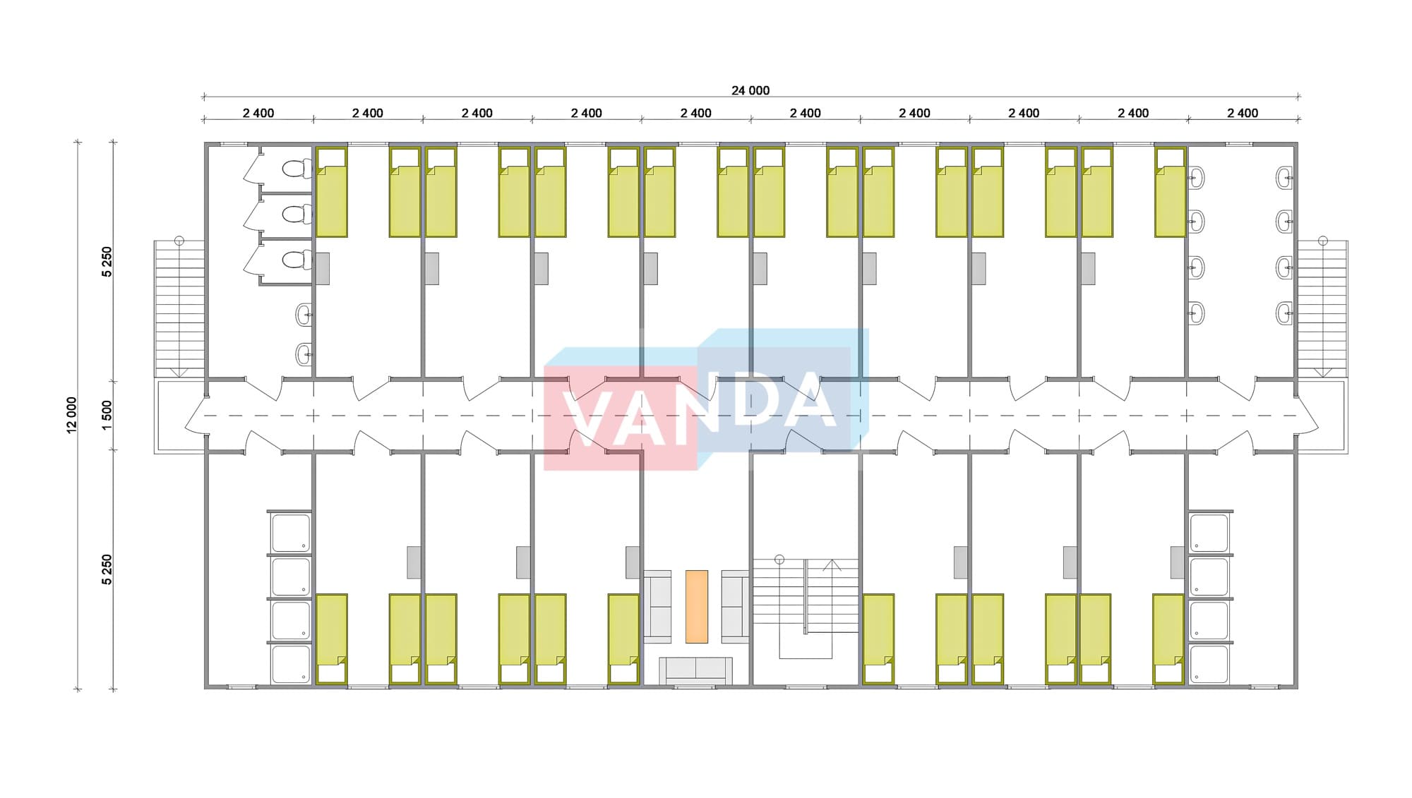 Проект общежития из блок контейнеров 12x24 Панели OSB