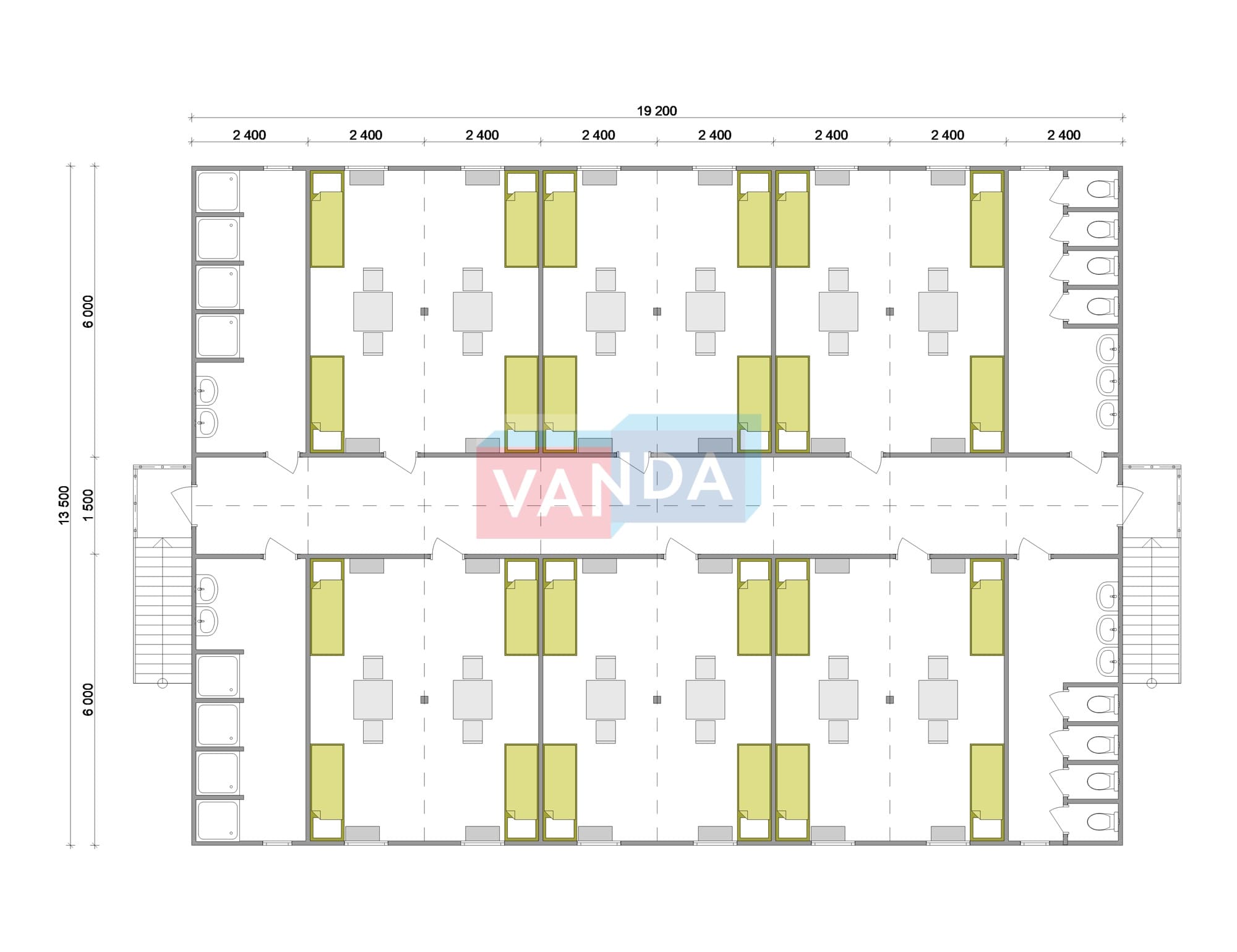 Проект общежития из блок контейнеров 13,5x19,2 Панели МДФ