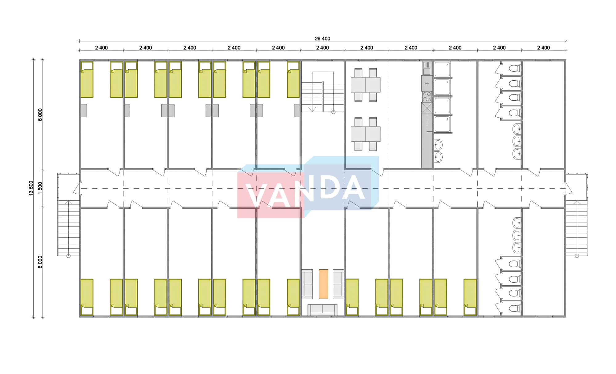 Проект общежития из блок контейнеров 13,5x26,4 панели МДФ