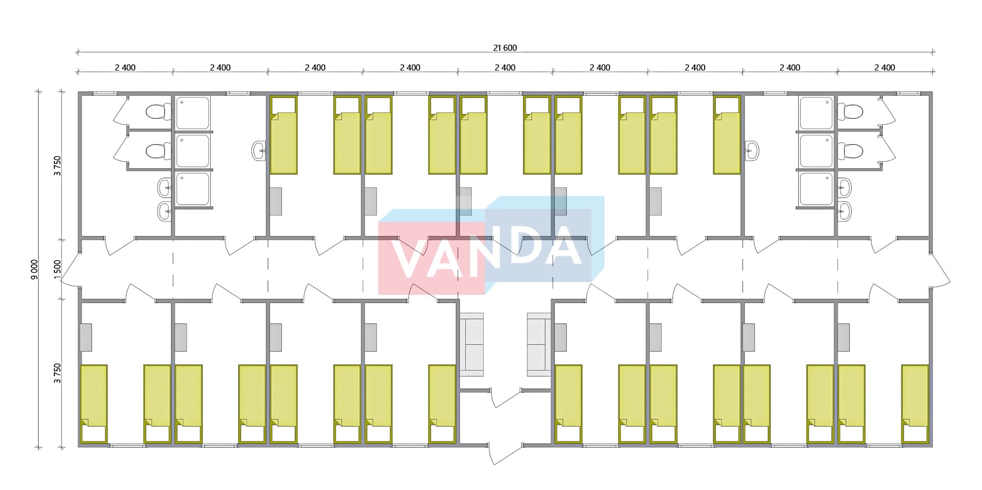 Проект общежития из блок контейнеров 9x21,6 ЛДСП
