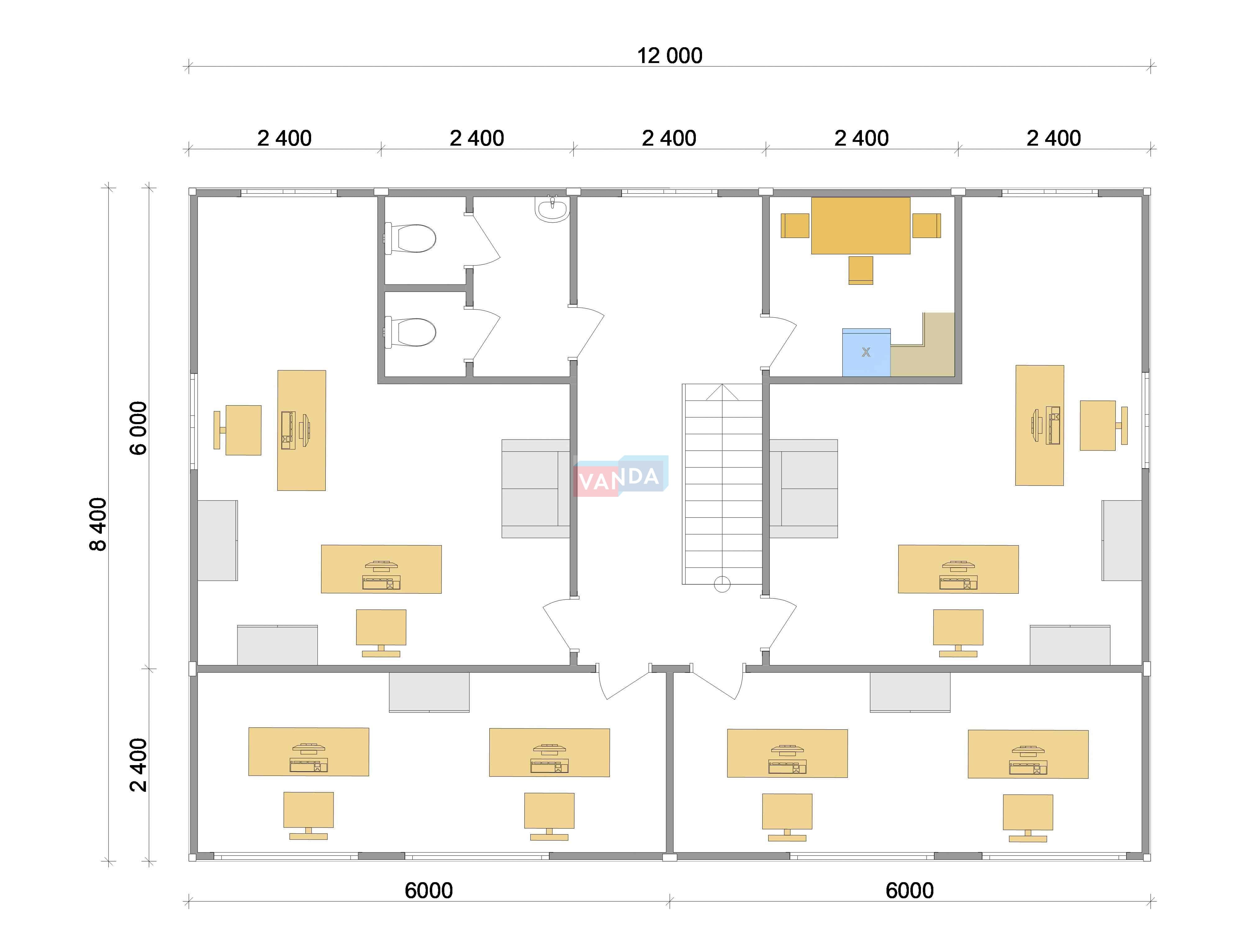 Офисный блок-контейнер с перегородками № 7 (вариант 1)