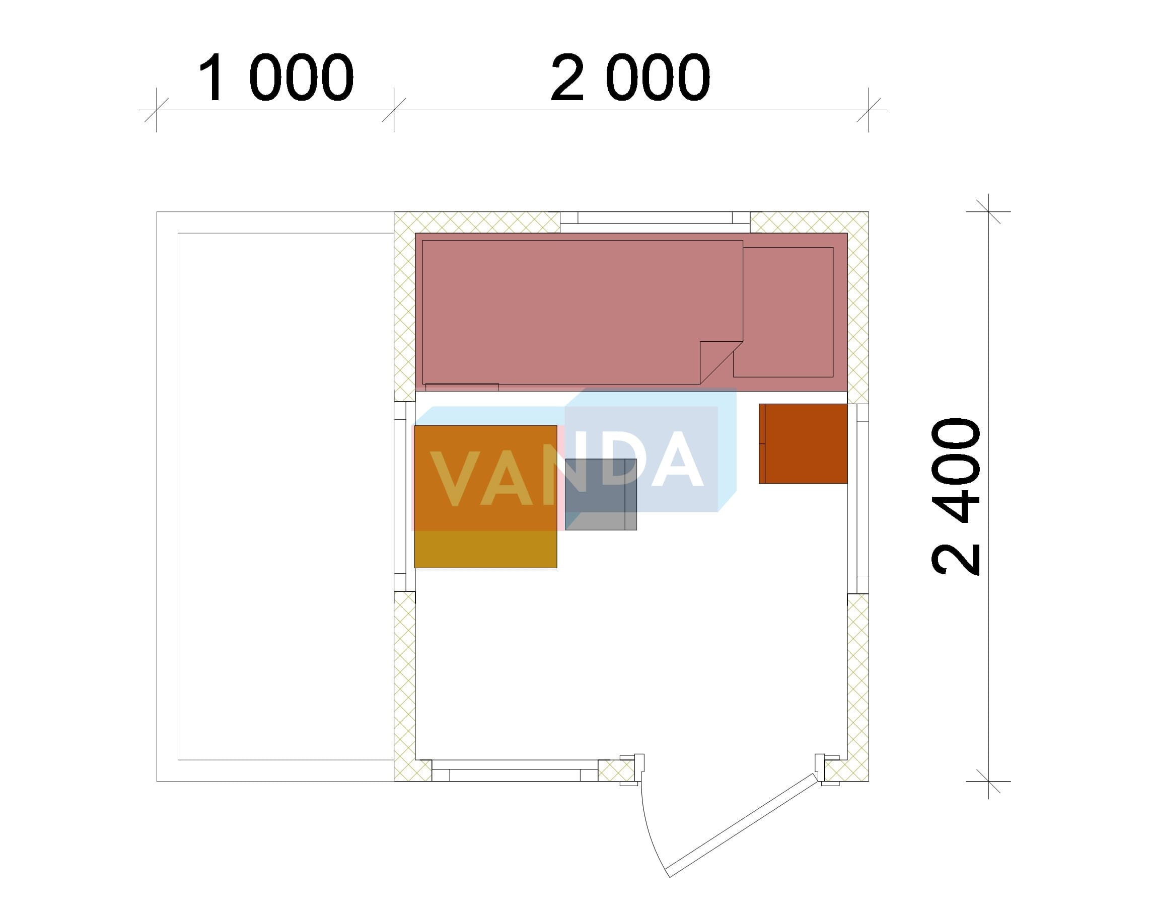 Металлическая бытовка с кухней в тамбуре 5,85 x 2,4 - Оргалит ДВП