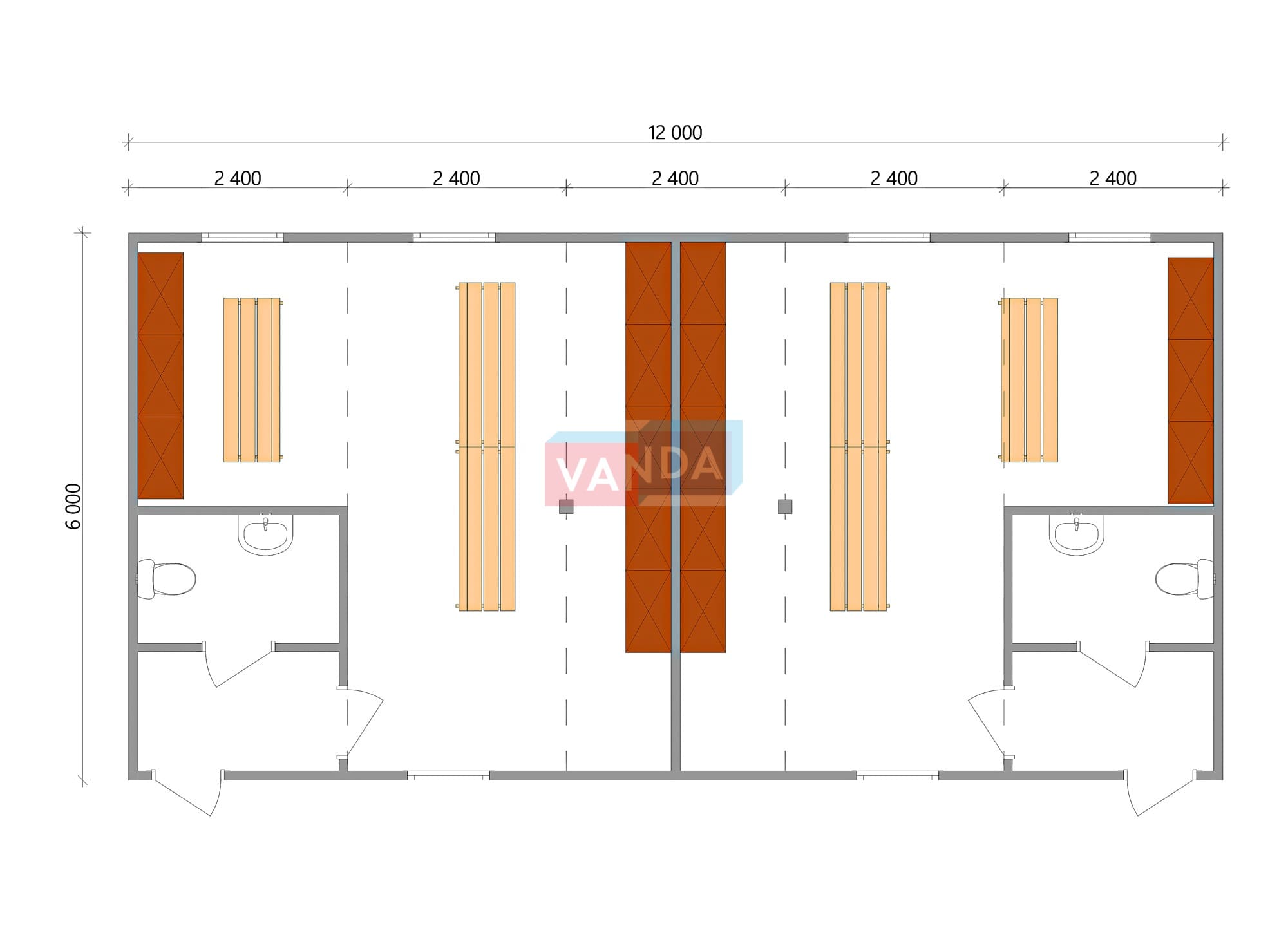 • Габаритные размеры - стандартные размеры одного модульного здания (наружные): Длина: 6 м. Ширина: 2,4 м. Высота: 2,5 м.