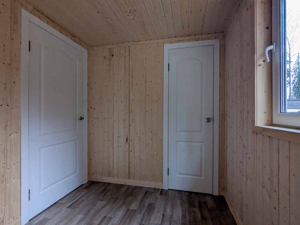 • Двери - Дверь наружная - металлическая утепленная, с одним контуром уплотнителя и замком; двери внутренние - МДФ с ручкой защёлкой.